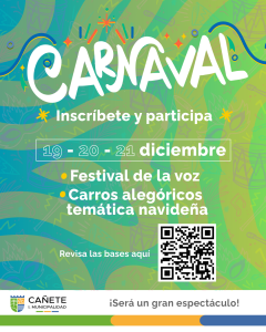 La Municipalidad de Cañete invita a toda la comunidad a participar en el Carnaval de Cañete 2024, una fiesta de inclusión, cultura y tradición. Este evento tiene como propósito fomentar la identidad comunal, promover la cooperación entre los habitantes y disfrutar de un espectáculo de esparcimiento para todos. Este año, el Carnaval se dividirá en …