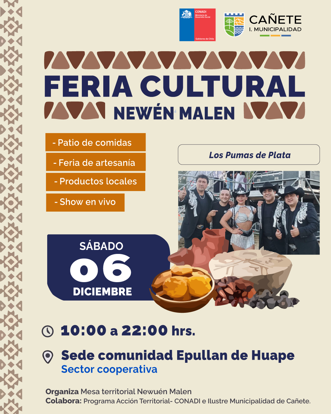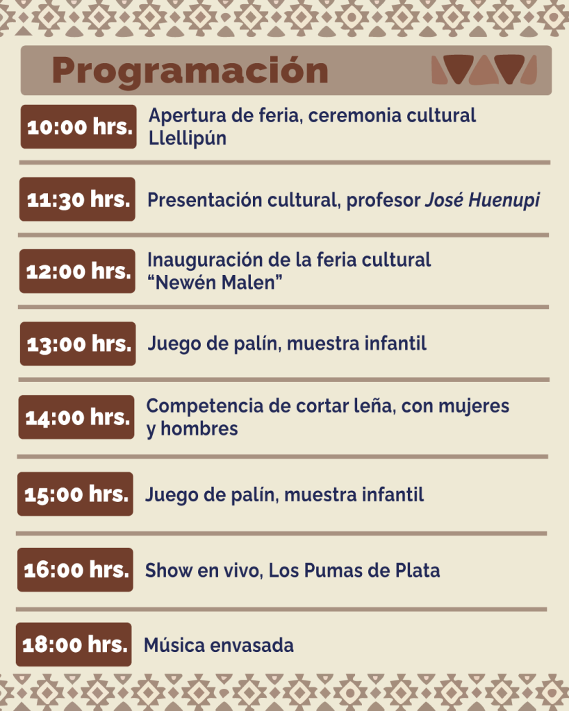 ¡Marca tu calendario! Estás cordialmente invitado/a a la PRIMERA FERIA CULTURAL NEWÉN MALEN, un evento inolvidable que celebra nuestras raíces y tradiciones.