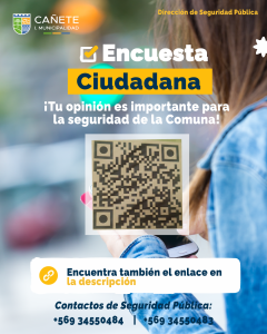 La Ilustre Municipalidad por medio de la Dirección de Seguridad Pública te invita a participar de la Encuesta Ciudadana de Percepción de Seguridad en la Comuna. Esta iniciativa tiene como objetivo recoger la opinión de los vecinos y vecinas sobre la seguridad en sus barrios y en lugares públicos de la comuna, considerando el contexto actual …