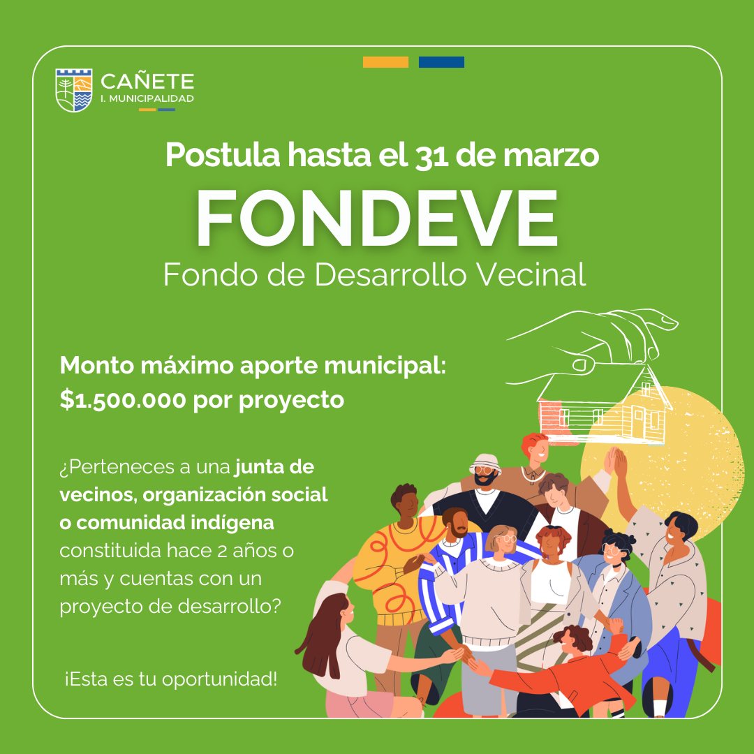 La Municipalidad de Cañete, a través del alcalde Jorge Radonich y el Concejo Municipal, invita a todas las organizaciones de la comuna a postular al Fondo de Desarrollo Vecinal (FONDEVE) 2026.