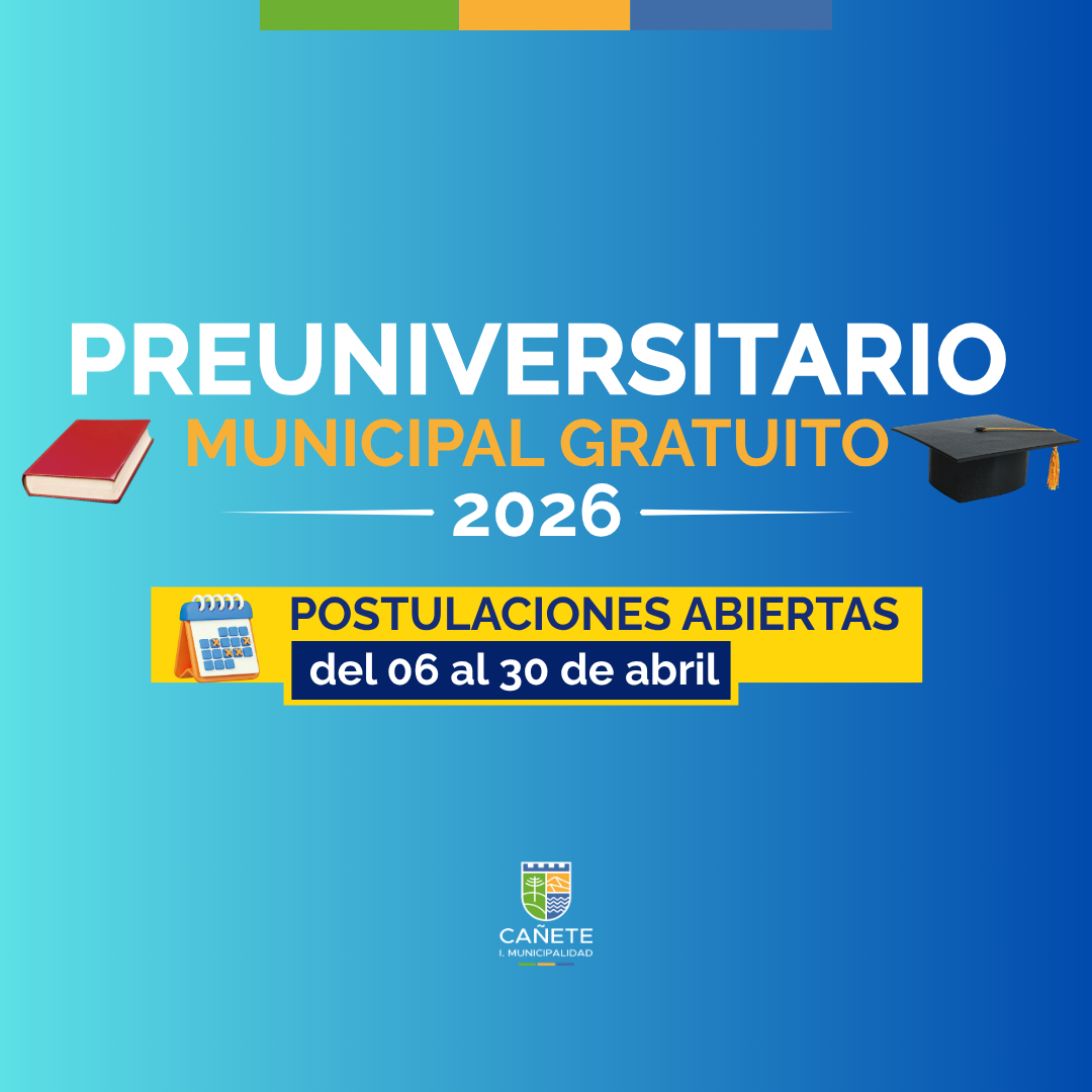 La Ilustre Municipalidad de Cañete, a través de su Oficina de Desarrollo Local Juvenil (ODELJU), invita a estudiantes de la comuna a postular al Preuniversitario Municipal Gratuito 2026, iniciativa que busca fortalecer la preparación académica de jóvenes que proyectan su ingreso a la educación superior.