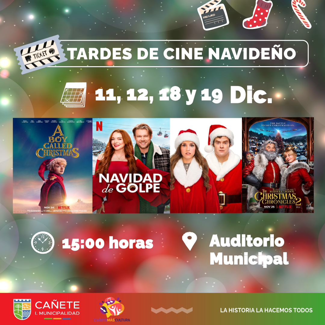 La Ilustre Municipalidad de Cañete, por medio de su Oficina de Cultura, tiene el placer de invitar a toda la familia a participar en el ciclo especial de Tardes de Cine Navideño que llenará de espíritu festivo nuestro Auditorio Municipal.